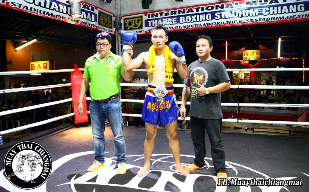 “เสี่ยกาศ”นฤนาท ไฝเครือ นายสนามมวยนานาชาติ เวทีท่าแพ ขึ้นคาดเข็มขัดแชมป์”รุ่นน้ำหนักพิกัด 80กิโลกรัม”ของสนามมวยนานาชาติ เวทีมวยท่าแพ ให้กับ กาสะลอง ว.พ.ลำปาง เป็นฝ่ายชนะแนน อาซิม แบงกาแรงยิม(สวิตเซอร์แลนด์) อย่างสนุกดุเดือดตลอดห้ายก เรียกเสียเชียร์แฟนหมัดมวยกึกก้องสนาม ที่ สนามมวยนานาชาติ เวทีมวยท่าแพ เชียงใหม่