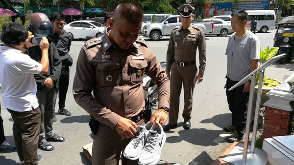 35 ปี อยู่บ้านเลขที่32 ซอยต๋าเหิน ถนนเมืองสาตร ต.หนองหอย อ.เมือง จ.เชียงใหม่ พร้อมด้วยของกลาง รองเท้านักท่องเที่ยวชาวต่าง