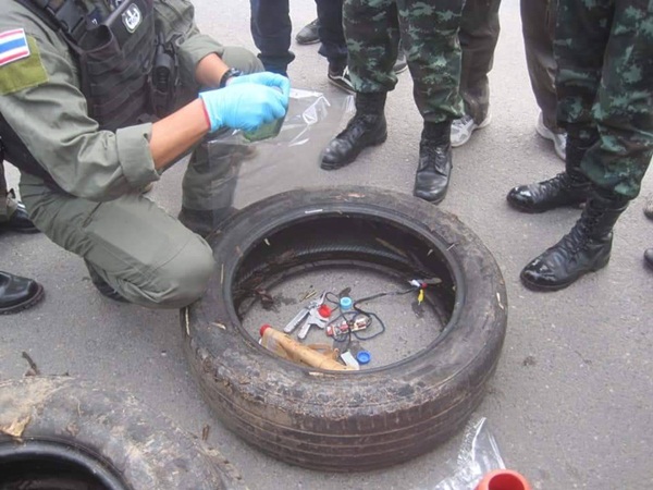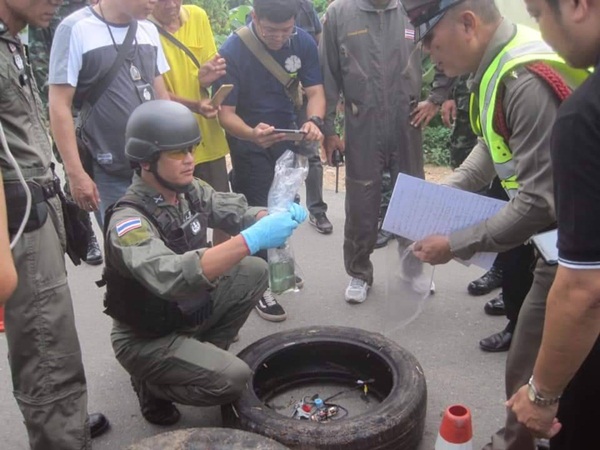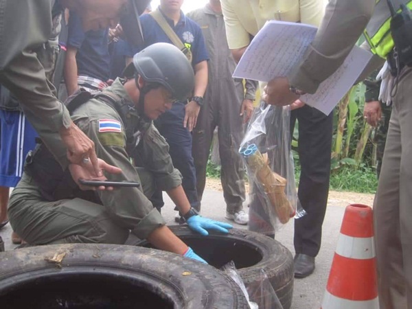 โดยพบว่ามีวัตถุดิบเป็นน้ำมันก๊าด ตะปูขนาด2 นิ้ว ท่อแป๊บยาว20 เซน 3 ท่อพันเทปกาว แผงวงจรเชื่อม สายไฟต่อเชื่อมติดกันไว้ หากมีการระเบิดจะทำให้เกิดประกายไฟและถึงแก่ชีวิตได้ จึงทำการปลดแล้วเก็บกู้นำส่งไว้สถานีตำรวจภูธรเมืองลำพูน เพื่อหาลายนิ้วแฝงและตรวจสอบหาผู้กระทำผิดหรือผู้นำมาวางไว้ต่อไป