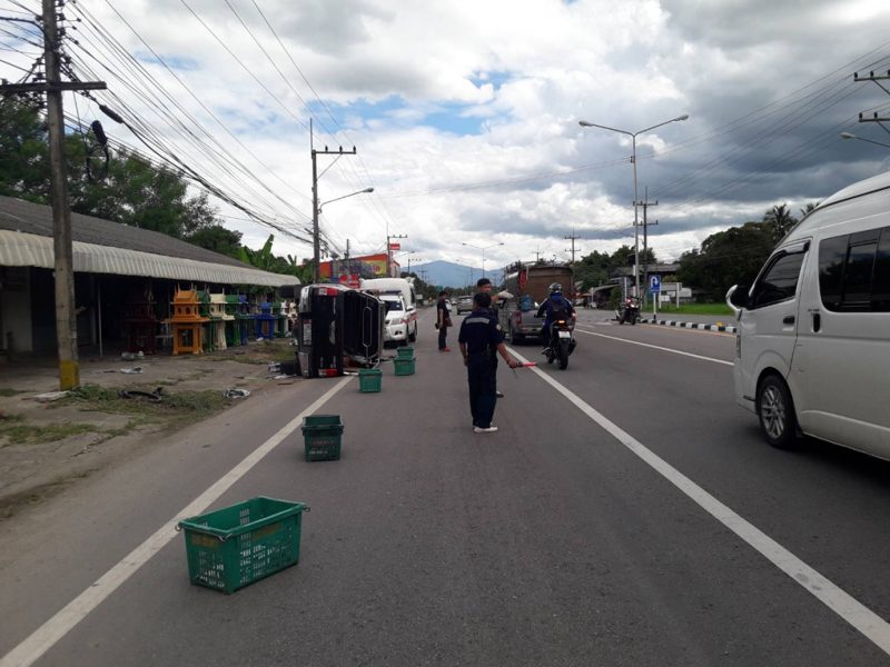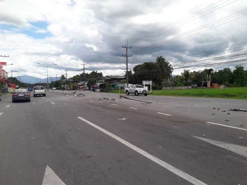 หมาตัดหน้าหักหลบเคราะห์ดีแค่ตกใจ แต่ต้องจ่ายค่าเสียหายให้กรมทางหลวงเพราะชนเสาไฟฟ้าหัก
