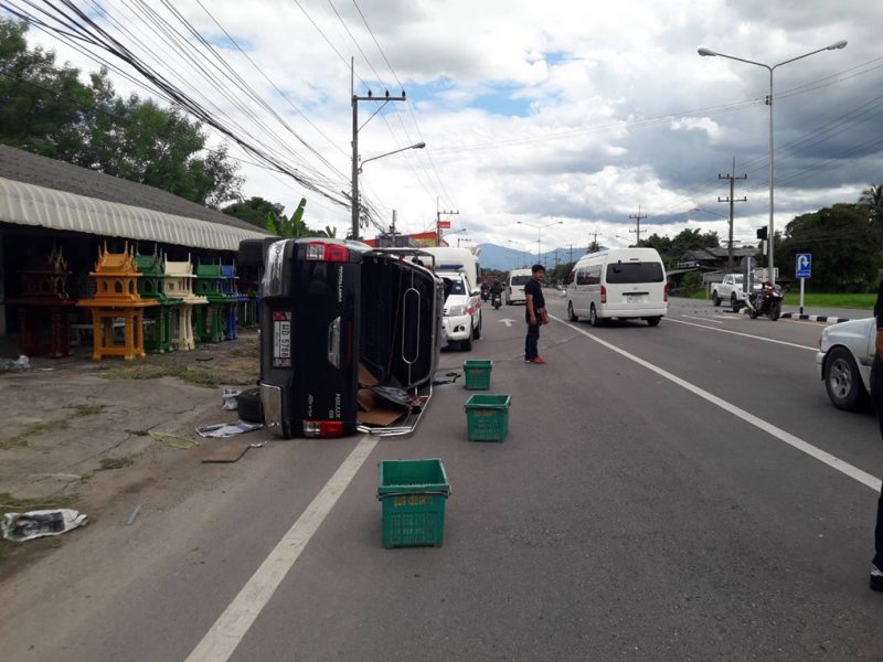 วันนี้ 28 มิ.ย 6214:00 น พนักงานสอบสวนเวร สภ.แม่ริม จังหวัดเชียงใหม่ ได้รับแจ้งมีเหตุรถพลิกคว่ำบริเวณจุดยูเทิร์นตำบลขี้เหล็กเส้นทางมุ่งหน้าจะไปทางแม่แตง และรถข้าม เกาะกลางพุ่งชนเสาไฟฟ้าทางหลวง ทำให้รถข้ามไปอีกฝั่งหนึ่ง ทำให้ทรัพย์สินราชการเสียหาย จึงรายงานผู้บังคับบัญชาทราบและเดินทางไปกับเจ้าหน้าที่กู้ภัยพร้อมสายตรวจในที่เกิดเหตุพบรถยนต์กระบะ ยี่ห้อ Toyota รุ่น Revo ทะเบียนผอ 5768 เชียงใหม่ นอนตะแคงหันหัวรถไปทางขาเข้าเมือง