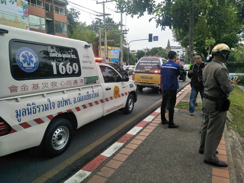 วันนี้ 4 ก.ค. 62 เวลา 09.44 น. มูลนิธิรวมใจเชียงใหม่  พร้อมกับเจ้าหน้าที่ตำรวจสายตรวจ เข้าทำการช่วยเหลือหลังจากได้รับแจ้งว่ามีรถยนต์กระบะตกลงไปในคูเมือง บริเวณหน้าห้าง ไอคอน ไอที เชียงใหม่ ถนนมณีนพรัตน์ อ.เมือง จ .เชียงใหม่  ในที่เกิดเหตุพบรถกระบะคันดังกล่าวจมน้ำทั้งคัน เห็นแค่เพียงหลังคา ส่วนคนขับเป็นชายหนุ่มตั้งสติได้รีบเปิดประตูว่ายน้ำขึ้นฝั่งได้อย่างปลอดภัย