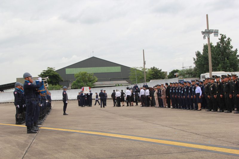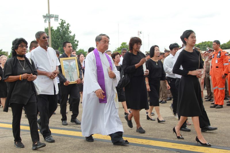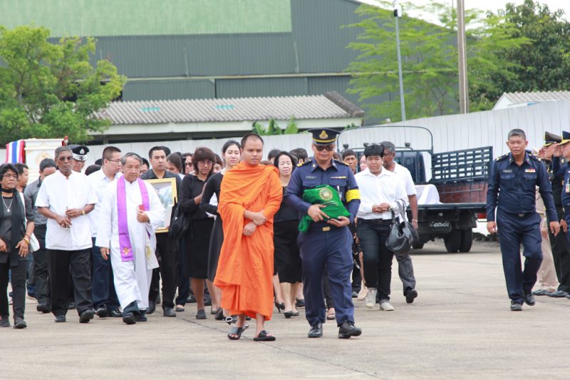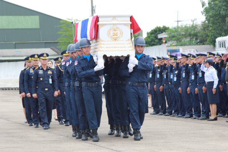 จากนั้น ได้ทำพิธีส่งศพ โดยเครื่อง C-130 กองทัพอากาศไปยังท่าอากาศยานกองบิน 6 ดอนเมือง และเคลื่อนไปยังโรงพยาบาลภูมิพลอดุลยเดช เพื่อทำการชันสูตร จากนั้นจะเคลื่อนย้ายศพไปยังฌาปนสถานกองทัพอากาศ วัดพระศรีมหาธาตุ บางเขน โดยมีพิธีรดน้ำศพ และน้ำหลวงพระราชทานอาบศพ ในเวลา 16.00 น. และจะมีพิธีสวดอภิธรรม ระหว่างวันที่ 12-20 กรกฎาคม 2562 (เว้นวันที่ 16-17 ก.ค.) และพิธีพระราชทานเพลิงศพ ในวันที่ 21 กรกฎาคม 2562 ณ ศาลาทักษิณาประดิษฐ วัดพระศรีมหาธาตุ บางเขน