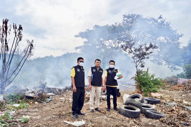 เดินทางเข้าตรวจสอบพื้นเพลิงไหม้ พื้นที่ที่ลักลอบดำเนินการกำจัดขยะ โดยไม่ได้รับอนุญาติจากเจ้าพนักงานท้องถิ่น โดยมีนายสันต์ชัย โพธินวล และนางชลธิชา โพธินวล อาชีพ ทนายความ ได้แสดงตนเป็นเจ้าของพื้นที่กำจัดขยะดังกล่าว คณะเจ้าหน้าที่ร่วมตรวจสอบจึงใด้ให้คำแนะนำในการแก้ไขปัญหาและการดำเนินการกำจัดขยะที่ถูกต้อง พร้อมทั้งแจ้งดำเนินคดีตามกฎหมายที่เกี่ยวข้องต่อไป