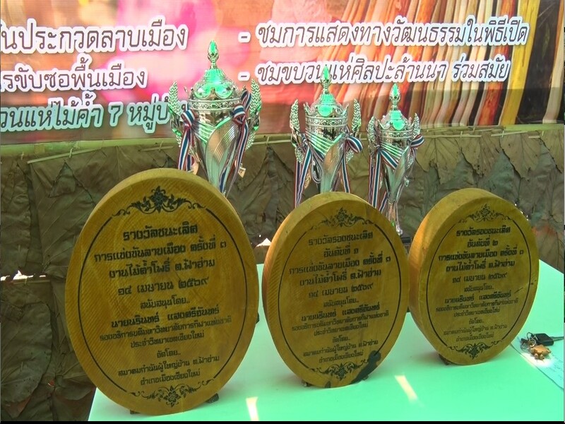 ชมรมกำนันผู้ใหญ่บ้านฟ้าฮ่ามสืบสานตำนานแห่ไม้ค้ำสะหลี. ส่งไม้ต่อให้ลูกหลานคนเมือง