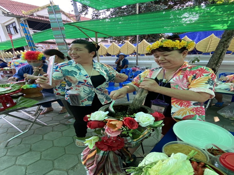 กิจกรรมในช่วงเช้าประชาชนร่วมแข่งขันลาบเนียน(ลาบลีลา) แข่งขันลาบรสชาติ และแข่งขันทำส้มตำลีลา ซึ่งมีทีมเข้าแข่งขันจากทั้งหมด 7 หมู่บ้านและเทศบาลตำบลฟ้าฮ่ามรวม 15 ทีม การแข่งขันทั้งลาบลีลาและการแข่งขันส้มตำลีลาเป็นไปด้วยความสนุกสนานสร้างความประทับใจให้กับชาวบ้านตลอดจนทั้งท่องเที่ยวที่มาร่วมงานเป็นอย่างมาก นอกจากนี้ภายในงานยังมีการจัดแสดงซอพื้นเมืองจากศิลปินช่างชื่อดังบุญทอง  ร้องอ้อ มาร่วมขับซอ ให้เข้ากับบรรยากาศช่วงเทศกาลปี๋ใหม่เมือง